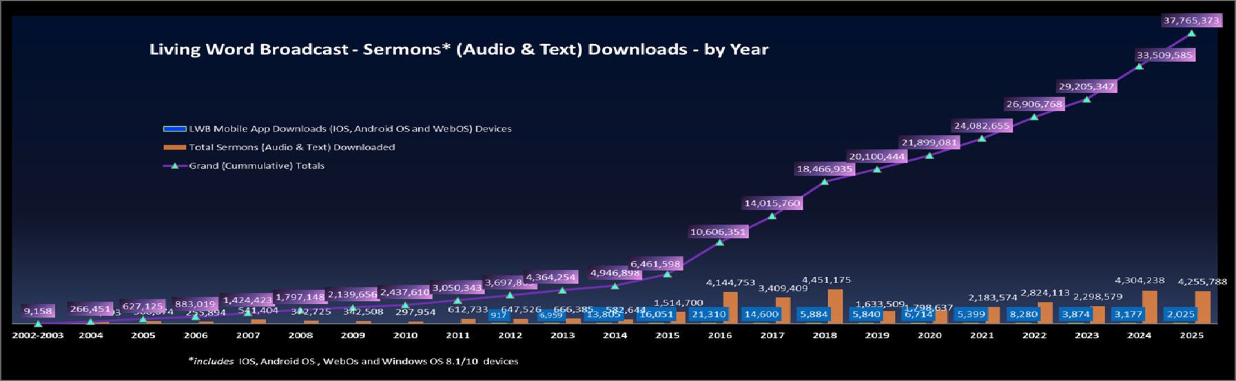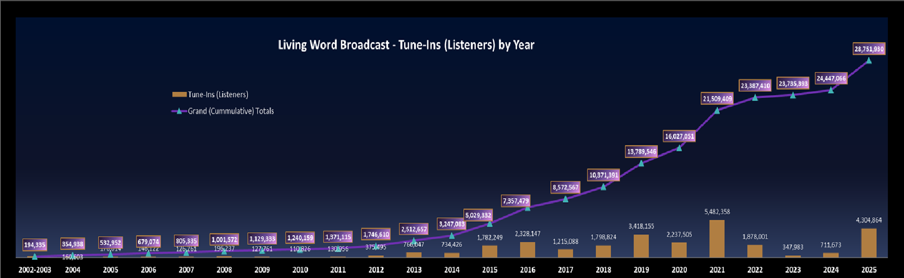 Living Word Broadcast March 17th, 2002 - December 31st, 2025 Highlights of projects and results: