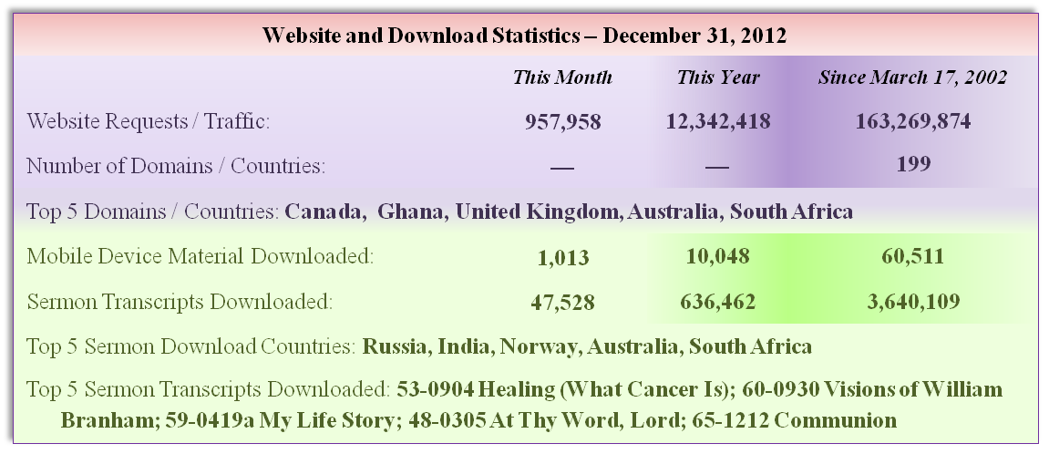 January 2013 Newsletter - Statistics