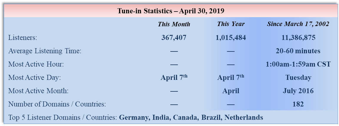 Website, Tune-in, Sermon Download & Book Distribution - Summary Statistics