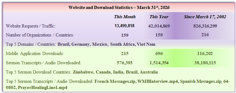 Website, Tune-in, Sermon Download & Book Distribution - Summary Statistics